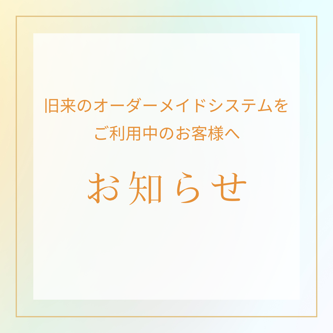 このたび、旧来のオーダーメイド会員システムは【2026年2月末日】をもちまして終了させていただくこととなりました。